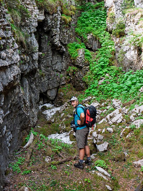 Un petit canyon improbable permet de franchir l'antécime rocheuse bien visible du bas, mais absente de la 1/25000e (Chartreuse orientale, Entremont-le-Vieux, Savoie - 13/07/10)