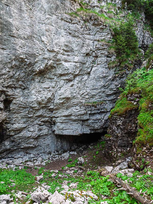 L'entrée principale du Grand Glacier souterrain de Chartreuse au plus profond de la doline du versant Est du Pinet (Chartreuse orientale, Entremont-le-Vieux, Savoie - 13/07/10)