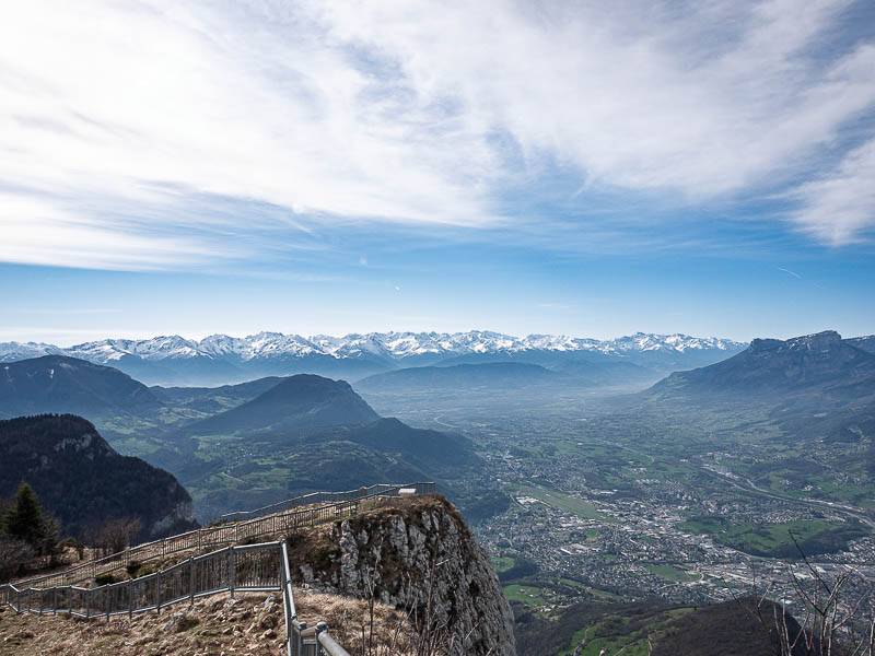 Visiter le site consiste à suivre le guide qu'offre le garde-fou. Toutes les directions ont leur intérêt, vers les Bauges, la Chartreuse, Belledonne, les monts du Chat et de l'Épine, le Lac du Bourget, etc.