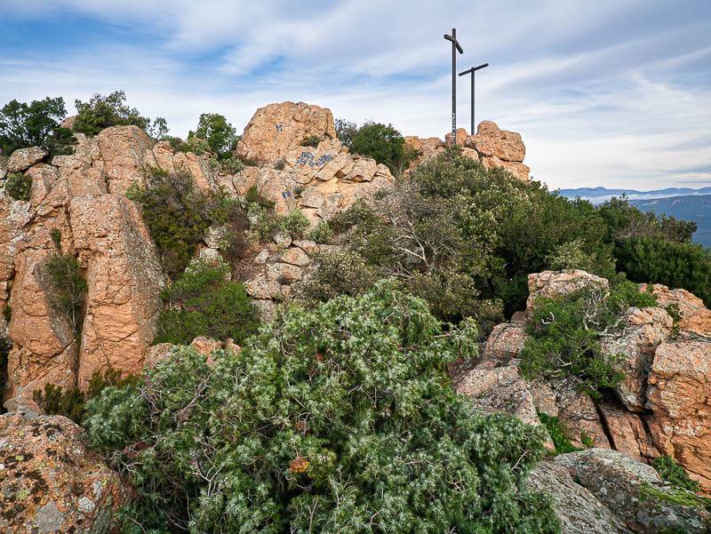 Deux des trois croix dressées au sommet, oeuvre du sculpteur Bernar Venet (Les Maures, Roquebrune-sur-Argens, Var – 23/12/12)