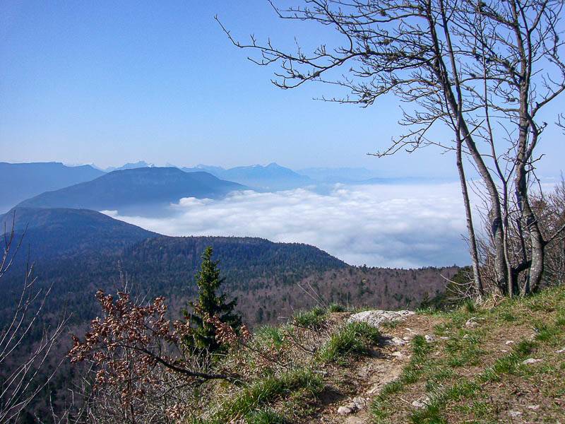 À proximité de la table d'orientation du Château Richard, la vue s'étend jusqu'à la Chartreuse. Une mer de nuages ne s'est pas encore levée sur le Lac d'Aiguebelette (Château Richard, Marcieux, Avant Pays Savoyard - 15/04/07).