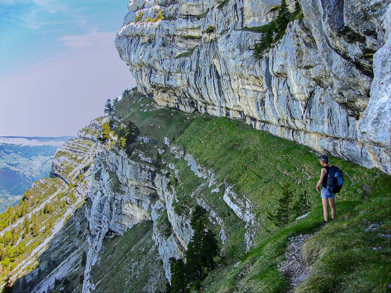 Vercors, Chartreuse, les randonnées du vertige par Pascal Sombardier pour le Grand Sangle du Fouda Blanc et la sortie sur le plateau par le Pas du Fouda Blanc.