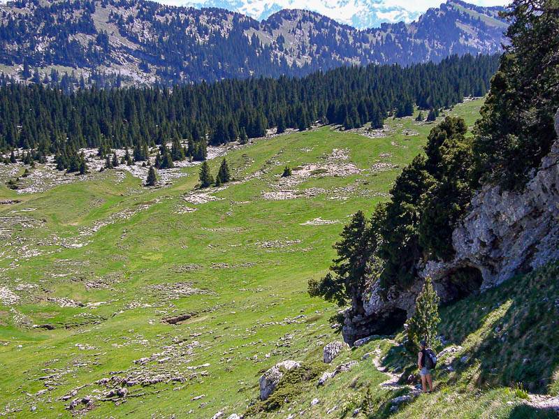 Dans la traversée du plateau sous les Rochers du Fouda Blanc, en direction du Habert de Saint Vincent et du Pas de l'Échelle (Chartreuse orientale, Entremont-le-Vieux - 19/05/07)