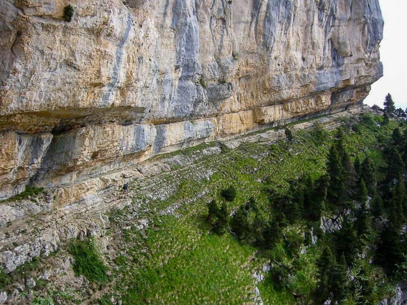 Le sangle au pied d'une grandiose barre rocheuse compacte (Chartreuse orientale, Sainte-Marie-du-Mont, Isère – 27/05/07)