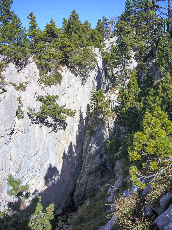 Profonde crevasse en contrebas de la crête du Grand Manti (Chartreuse orientale, Sainte-Marie-du-Mont, Isère - 16/10/07)