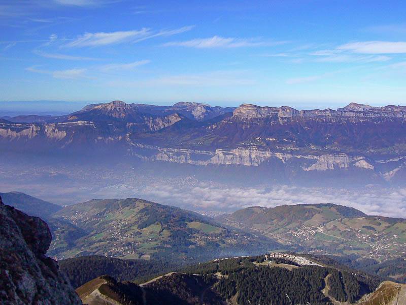 … s'étend jusqu'au Granier au Nord du massif. Chambéry est encore sous le brouillard (Belledonne Sud, Laval, Isère - 28/10/07)