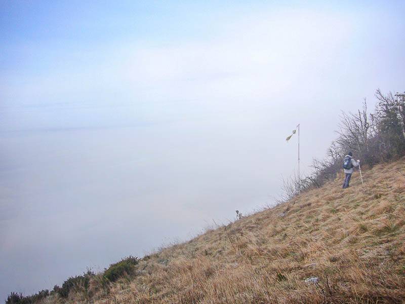 Maintenant plus facile à suivre, mais encombré de quelque ronces aux épines agressives, le sentier deviendra vite meilleur, agréable, entretenu, après une aire de décollage de vol libre qui est référencée sur le site officiel de la fédération de cette activité [ UTM 31T 0703688 5060880 ].