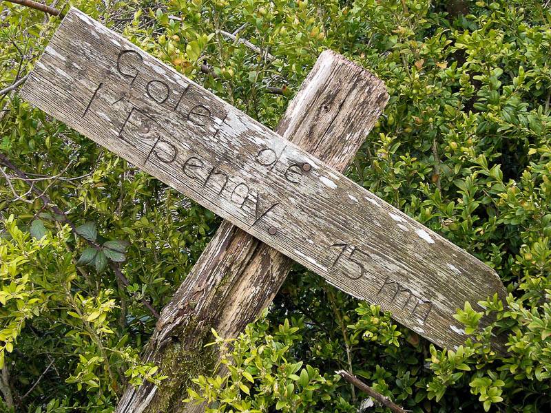 Un vieux poteau trouvé à proximité de la plantation de cèdres de l'Atlas indique le Golet de l'Epenay… Un passage dans les falaises à découvrir lors d'une prochaine randonnée (Bas Bugey, Murs-et-Gélignieux, Ain – 02/04/2008)