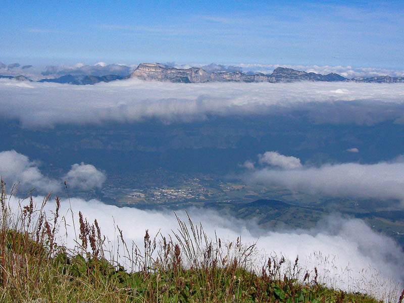 Derrière le Mont Saint-Mury, au delà de la mer de nuages, la Dent de Crolle et la Chartreuse (Belledonne Sud, Saint-Mury-Monteymond, Isère - 26/08/08)