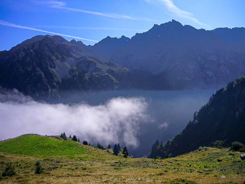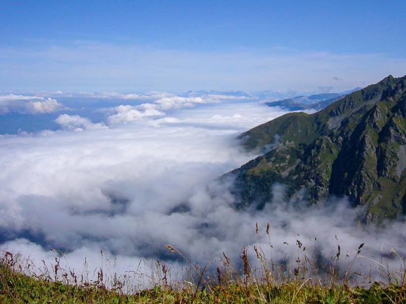 Orionde et la Montagne de Barlet émergent des nuages (Belledonne Sud, Saint-Mury-Monteymond, Isère - 26/08/08)