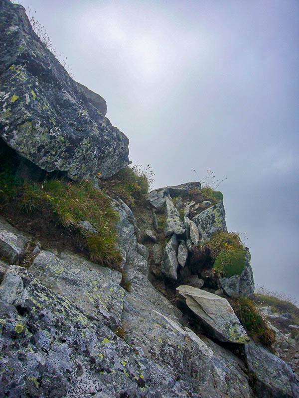 Sous le point coté 2234m, descente dans le brouillard (Belledonne Nord, Allevard, Isère – 02/09/08)