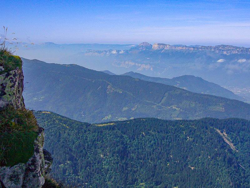 Salade et saucisson sortis du sac à dos revigorent, mais les nuages qui remontent de la vallée du Veyton, commencent à lécher les crêtes. Il fait frais, le temps calme n'est pas menaçant. Mais les nuées qui envahissent le paysage ravivent le souvenir de la montée, plutôt de la descente qui m'attend… Alors, sans précipitation, vite cependant, je refais le sac, range soigneusement aussi l'envie de flemmarder au sommet. Encore un rapide tour d'horizon vaporeux et je m'engage dans la descente.