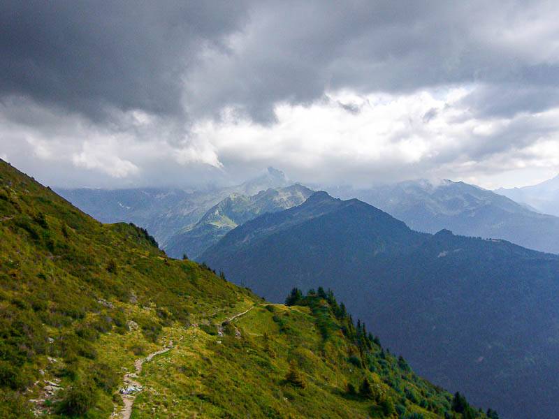 Regard sur la Vallée du Veyton sous le ciel menaçant (Belledonne Nord, Allevard, Isère – 02/09/08)