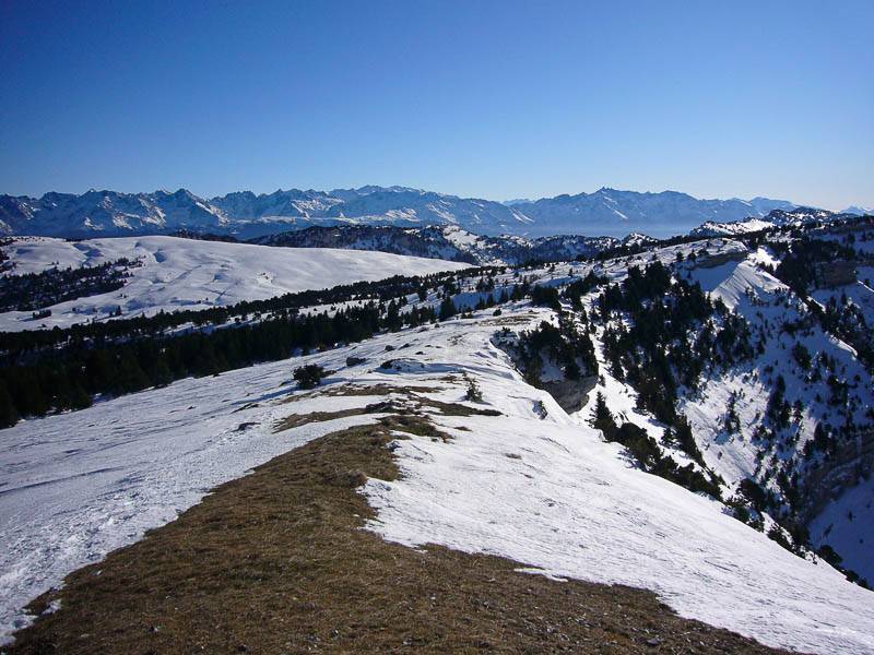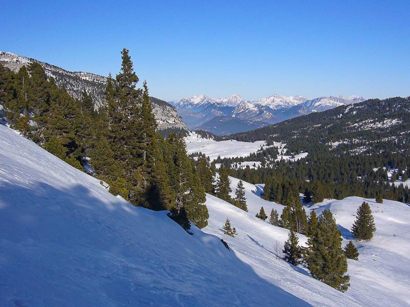 Depuis les pentes du Pinet, la Porte de l'Alpette offre la vue sur le Massif des Bauges (Chartreuse orientale, Entremont-le-Vieux, Savoie - 27/12/08)