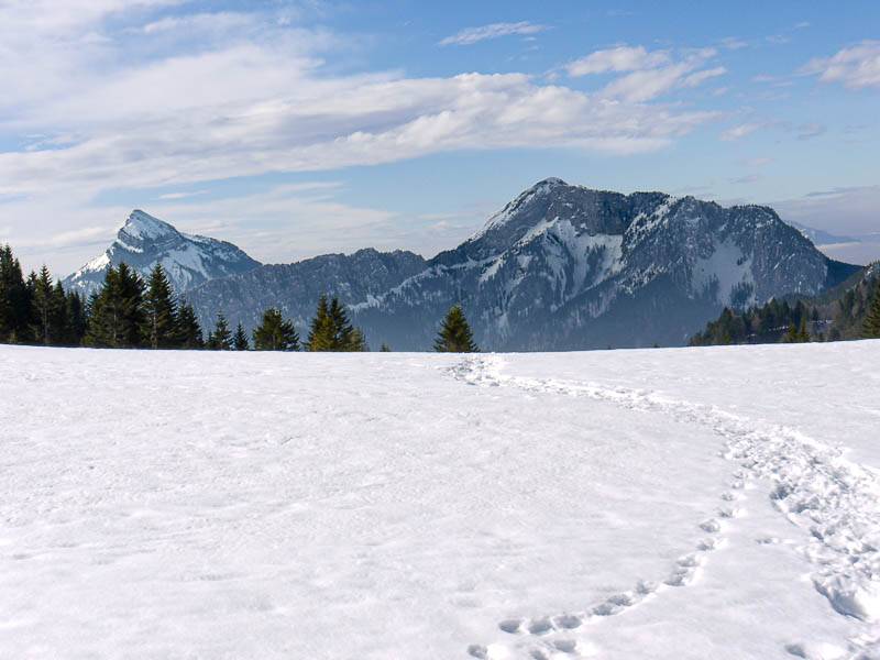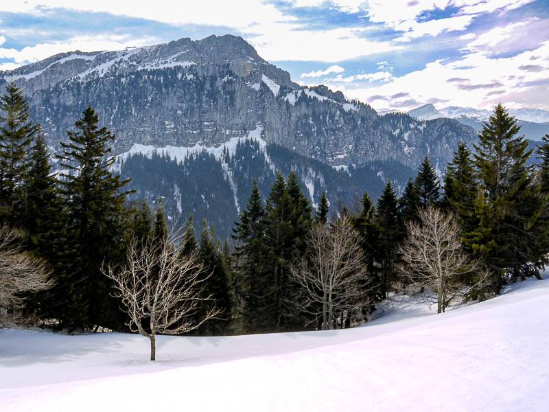 Au Col de l'Aliénard, Chamechaude et le Charmant Som s'imposent dans le paysage (Chartreuse centrale, Saint-Christophe-sur-Guiers, Isère - 01/04/09)