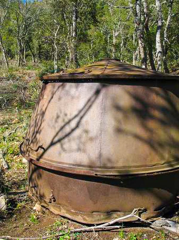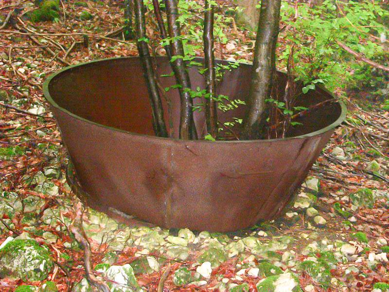 Vestige d'un four à charbon de bois… ressemblant à un énorme pot planté d'arbres – photographie Philippe Mahieu (Avant Pays Savoyard, Billième, Savoie - 11/06/09)