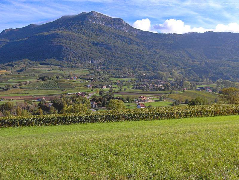 Billième au cœur du vignoble de Jongieux, dominé par la Charvaz (Avant Pays Savoyard, Billième, Savoie © wikipedia.org)