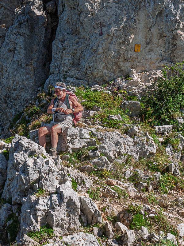 Quand la sente s'interrompt, c'est pour laisser la place à un passage plus rocheux où les prises sont parfois polies – mais les prises sont plutôt franches.