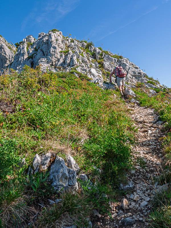 Passé le premier et court ressaut par une escalade facile, l'empreinte des générations de marcheurs a marqué le sol d'une bonne trace facile à suivre.