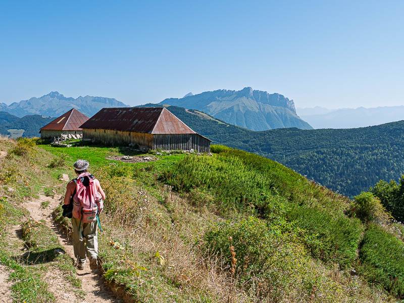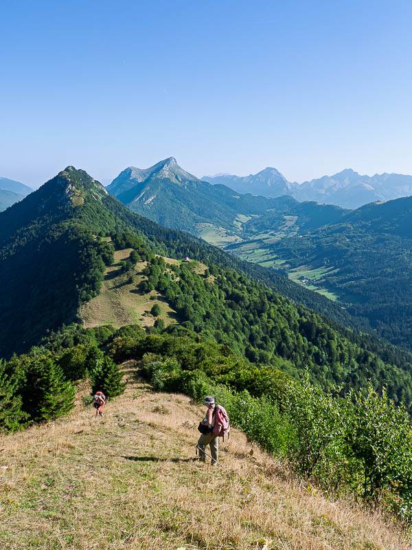 Sans nous attarder, le parcours aérien de la crête sommitale offre encore plus d'agrément qu'à l'aller. Ensuite, préférant descendre par l'arête plutôt que de contourner la Petite Pointe de la Galoppaz par l'Ouest sur le sentier normal, nous profitons pleinement du paysage qui s'étend vers le Nord face à nous. L'heure a tourné, il est temps de poser le sac à dos à proximité du Chalet de la Buffaz très bien entretenu.