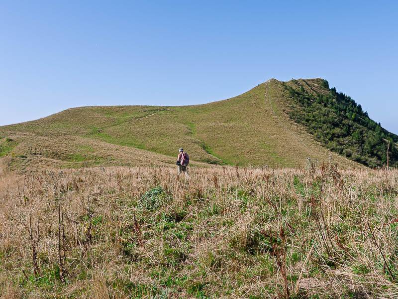 Sur l'arête Sud herbeuse, des traces remontent jusqu'à la cime de la Petite Galoppaz (Bauges sud, Aillon-le-Jeune, Savoie - 31/08/09)
