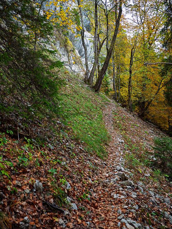 Sur le long sentier qui monte en écharpe sous l'arête de Bérard (Chartreuse Sud, Saint-Pierre-de-Chartreuse, Isère - 26/10/09)