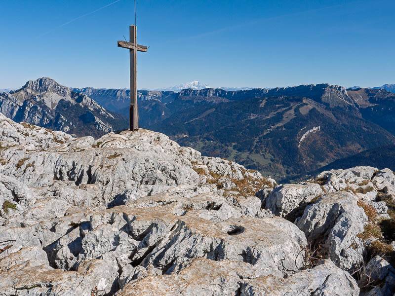 La croix du Charmant Som – le Grand Som, la vallée de Saint-Pierre-de-Chartreuse, l'enfilade des falaises des Lances de Malissard, etc. dessinent un paysage inoubliable (Chartreuse Sud, Saint-Pierre-de-Chartreuse, Isère - 26/10/09)