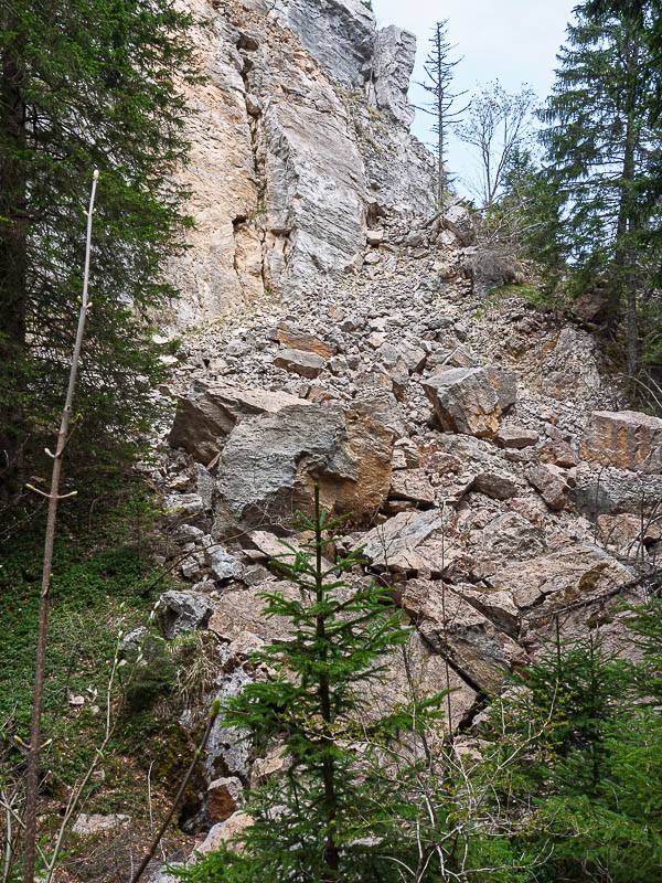 Curiosité géologique en descendant depuis le Creux de Lachat, l'escarpement rocheux de Château Larron (Bauges occidentales, Saint-Offenge-Dessous, Savoie – 19/05/10)