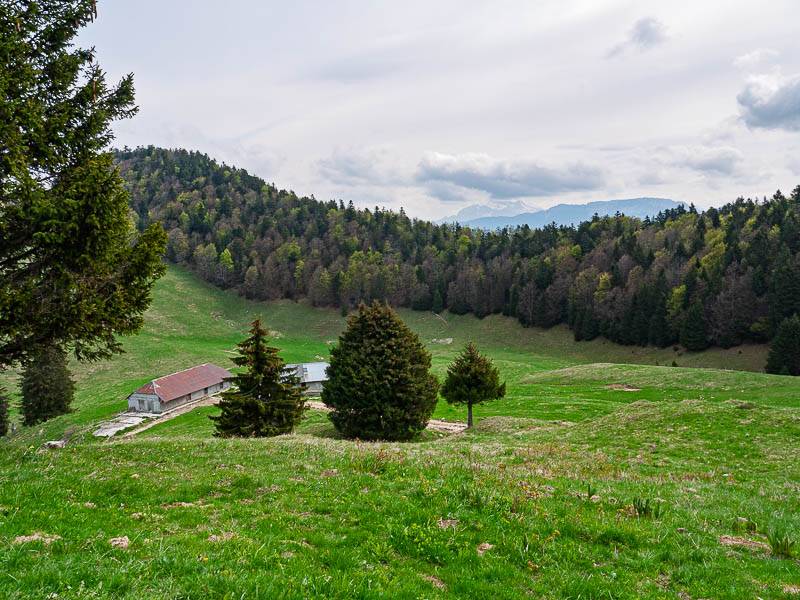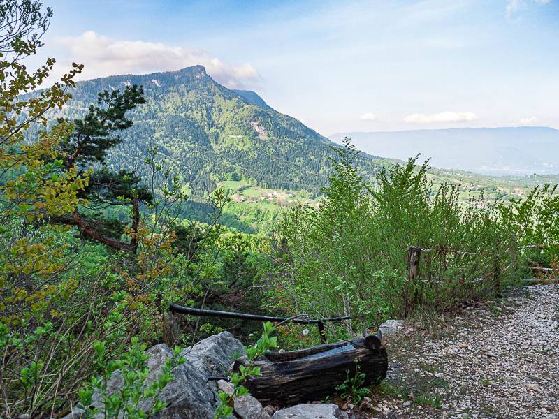 Pour l'anecdote, en me parlant de sa dernière randonnée, c'est mon médecin qui, a fait naître l'idée de ce parcours parfaitement adapté au printemps à la météorologie difficile et aux pentes encore enneigées en altitude que nous connaissons cette année. En forêt, à l'ombre du versant Ouest de la montagne, c'est dans la fraîcheur matinale que par les Daudes et le Rosset les bons chemins d'exploitation forestière montent au refuge Pierre Bouvard, jolie cabane de chasseurs ouverte à tous. Il est à noter que le tracé de la route n'est pas à jour sur les éditions IGN actuelles. La vue s'ouvre sur le Revard, Aix-les-Bains et le Lac du Bourget dominé par le Mont et la Dent du Chat.