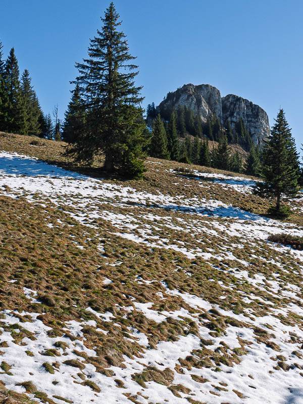Au débouché de la forêt, le Col des Charmilles s'ouvre sur la fin de l'arête Nord Est de la Grande Sure (Chartreuse occidentale, Saint-Laurent-du-Pont, Isère - 05/11/2010)
