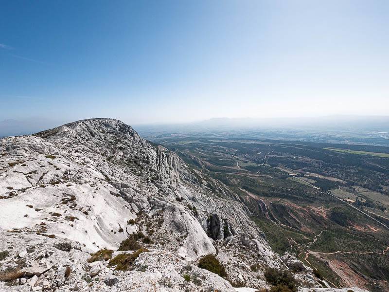 Du Signal de la Sainte Victoire, regard en arrière sur le chemin parcouru depuis la Baù des Vespres (Sainte-Victoire, Vauvenargues, Bouches-du-Rhône 26/03/11)