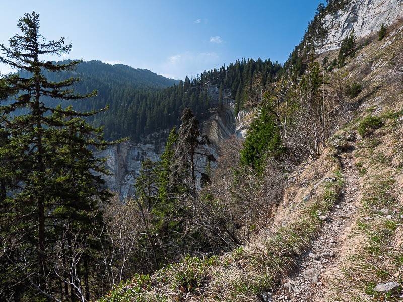 Sortant de la forêt, il revient au Sud sur une corniche impressionnante et va déboucher sur l'alpage de l’Alpette.