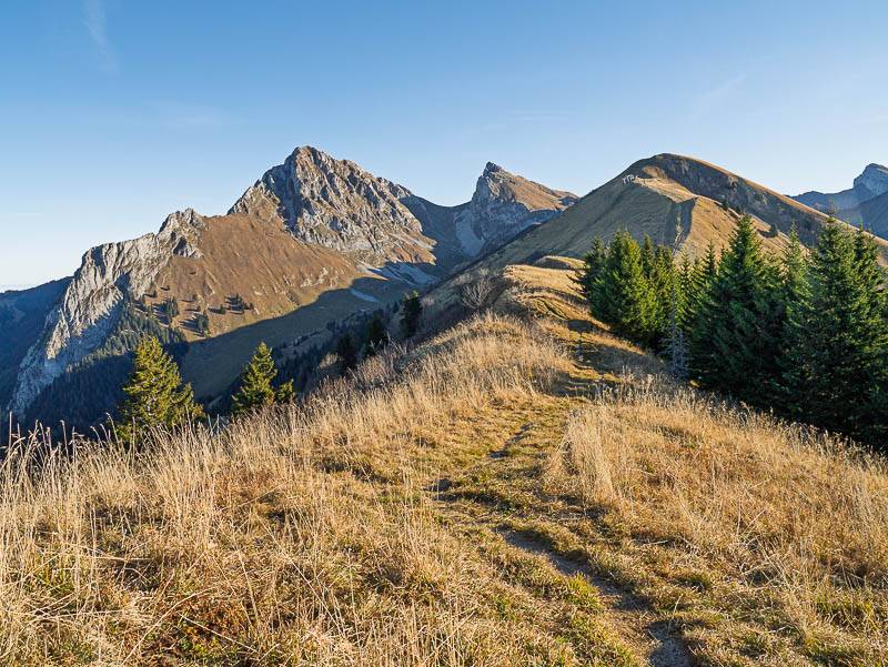 Le sentier du Col de la Case d'Oche monte le beau vallon sous l'Aiguille de Darbon. La Pointe de Bénevent devant les Cornettes de Bise (Chablais, Bernex, Haute-Savoie – 14/11/11)