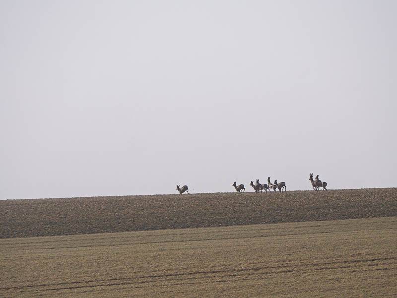 Un peu plus loin, la fuite de huit chevreuils laisse à peine le temps de changer l'objectif de l'APN (Bourgogne, Druyes-les-Belles-Fontaines, Yonne – 29/02/2012)