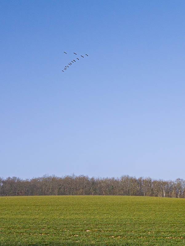 Depuis quelques jours, les vols élégants, parfois bruyants, de grues cendrées occupent le ciel de ce coin de l'Yonne (Bourgogne, Druyes-les-Belles-Fontaines, Yonne – 29/02/2012)