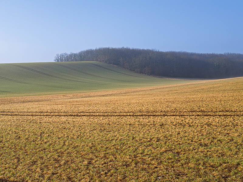 Le brouillard s'est enfin levé, les douces courbes des Grands Champs autorisent enfin les Grands Horizons, l'appellation de la randonnée proposée (Bourgogne, Druyes-les-Belles-Fontaines, Yonne – 29/02/2012)