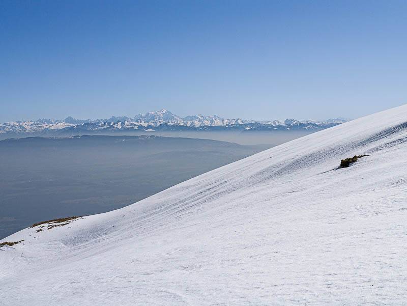Encore le Mont Blanc dans la descente du Crêt de la Goutte – on ne s'en lasse pas (Haut-Jura, Confort, Ain – 15/03/12)