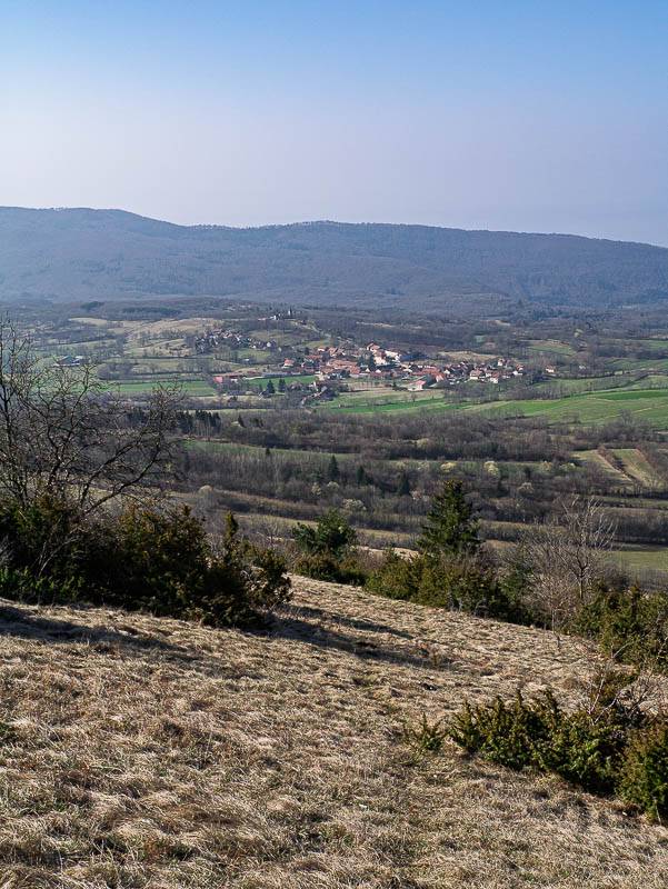 Sous la Cra, le calvaire d'Innimond, le belvédère de la Croix de la Roche offre une vue intéressante sur le Sud du Bas Bugey : Appregnin et le Lac d'Arboreiaz (Bas Bugey, Innimond, Ain – 29/03/12)