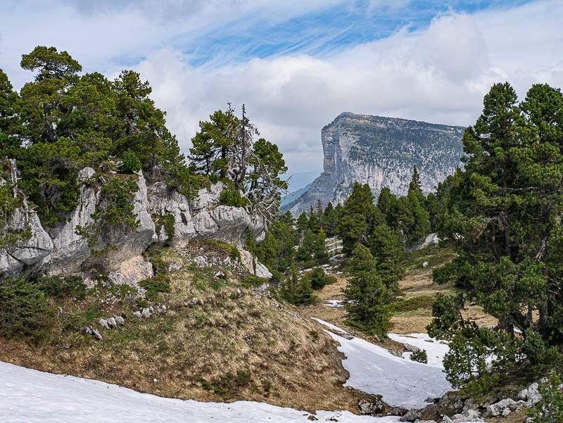 En descendant sur le Col de Belles Ombres avec le versant Sud du Mont Granier en ligne de mire (Chartreuse orientale, Sainte-Marie-du-Mont, Isère - 15/05/12)