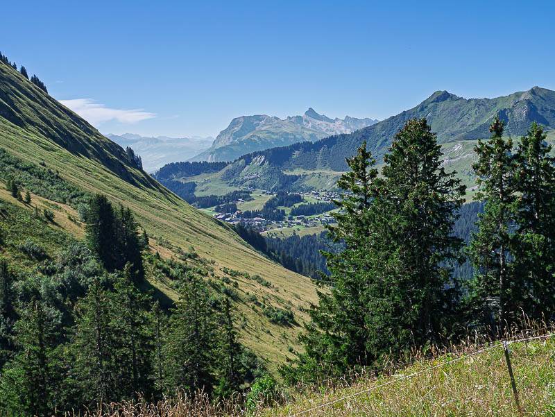 Au dessus du Col de la Bolire, la station des Gets et la Pointe Percée au loin qui caractérise les Aravis (Chablais, Mieussy, Haute-Savoie – 17/08/12)
