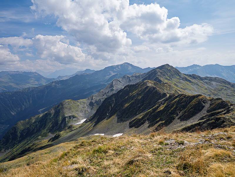 Depuis le Pas de l'Âne, le long chemin parcouru depuis la Roche Pourrie par la Pointe Saint-Jean et la pointe 2299 (Beaufortain, Queige, Savoie – 10/09/12)