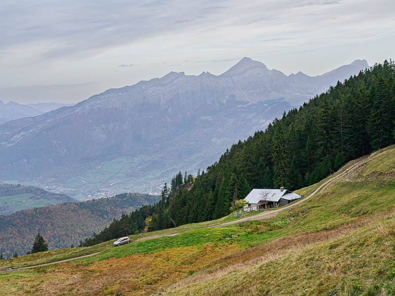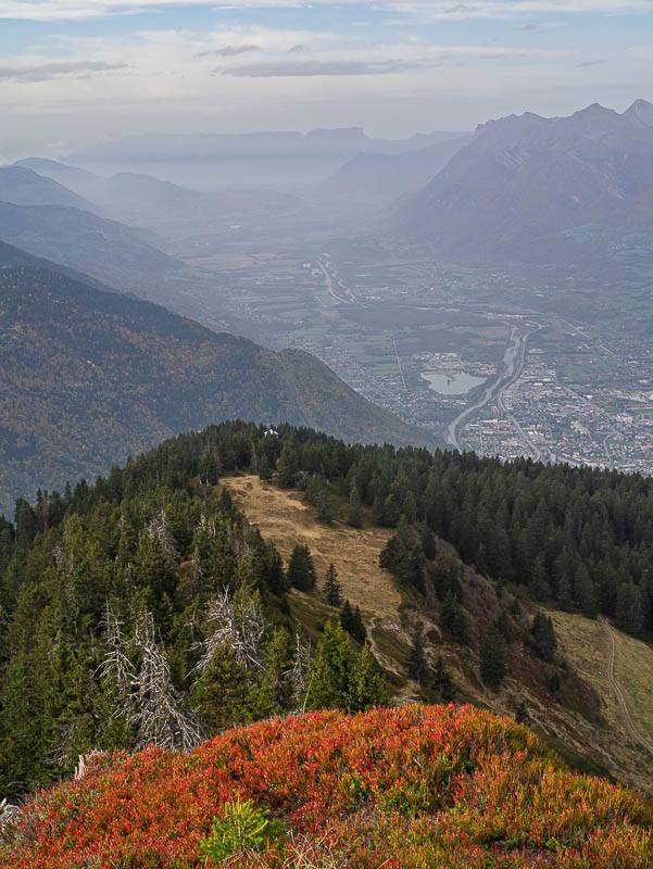 Albertville et la vallée de l'Isère. Sur la crête de la Roche Pourrie, le Blockhaus des Têtes dans la forêt, derrière le Petit Pré (Beaufortain, Venthon, Savoie – 22/10/12)