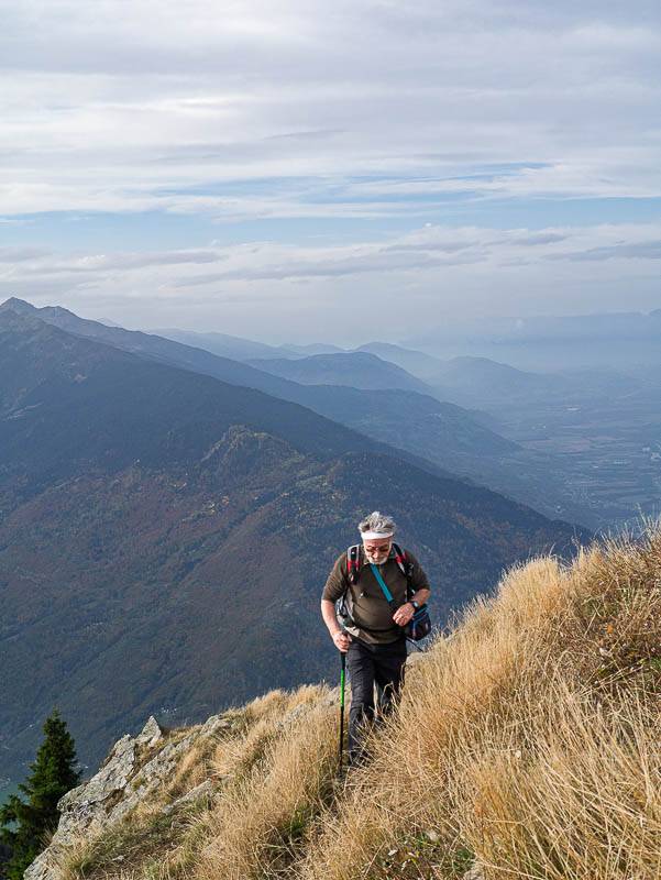 La fraîcheur du vent surprend, et enfiler un coupe-vent, apportera le confort nécessaire pour s'engager dans la traversée. Pressé d'en découdre avec l'arête, Antoine est déjà loin sur le sentier de crête étroit et exposé alors que je boucle les sangles du sac à dos.