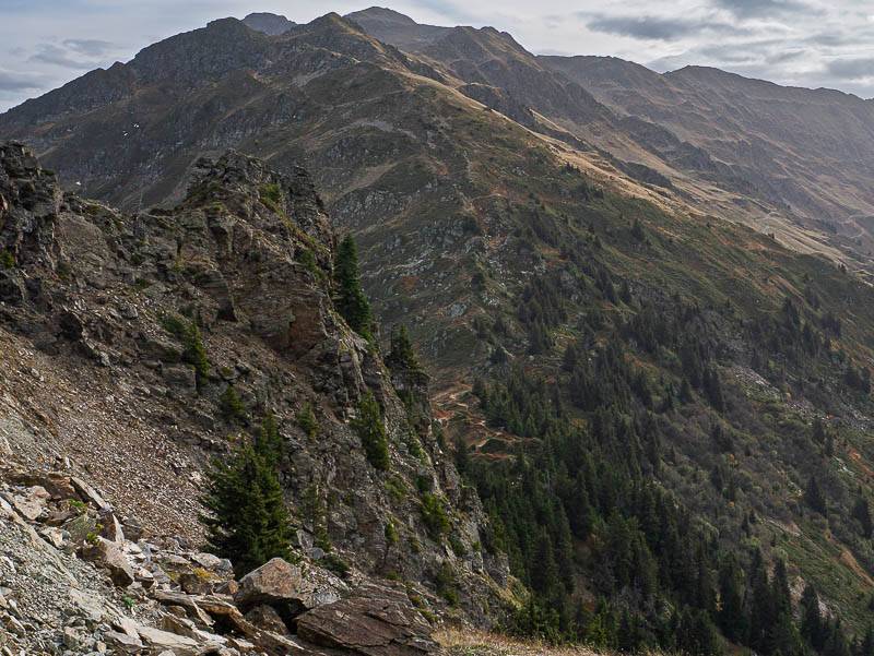 Sous le sommet de Roche Pourrie, l'enfilade des crêtes de la Pointe Saint-Jean jusqu'au Mont Mirantin (Beaufortain, Queige, Savoie – 22/10/12)