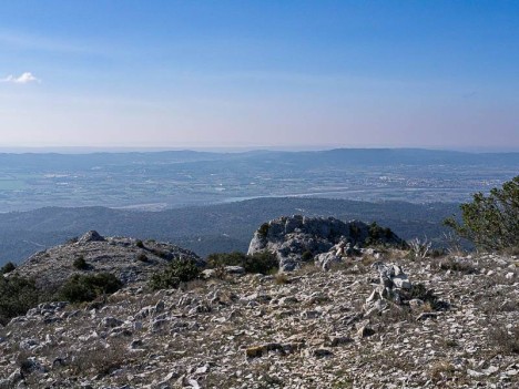 Brutalement, la vue dévoile une vaste étendue fermée au Nord, par les crêtes du Petit Luberon qui paraissent bien éloignées. Le mistral souffle avec de violentes rafales prévues à 100 km/h par Météo France… Parcourir le versant Sud devait me tenir à l'abri de la bourrasque. Enfin, c'est ce que j'avais imaginé…