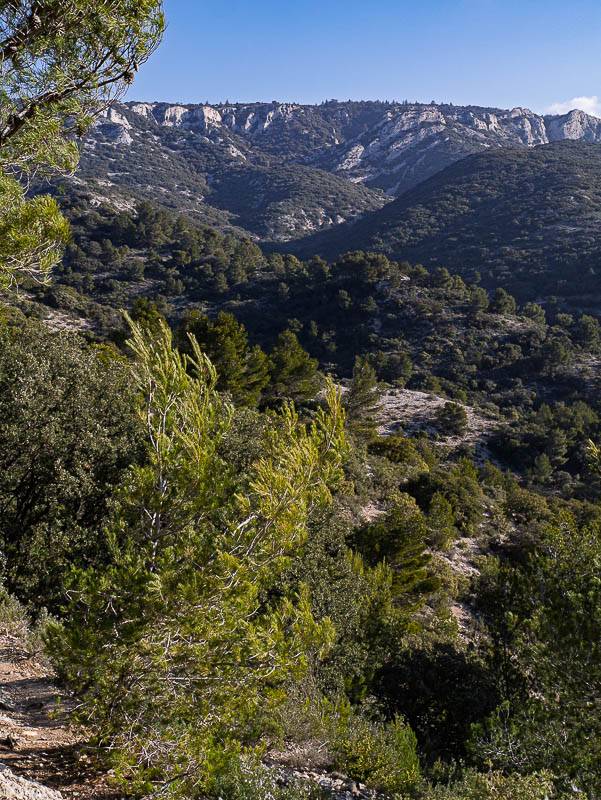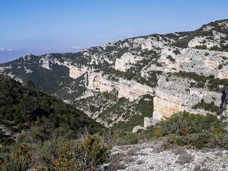 De la crête entre la Tête de Mourre Blanc et la Tête de la Jassine du Brau, les falaises Sud du Petit Luberon semblent encore loin (Petit Luberon, Mérindol, Vaucluse – 15/03/13)