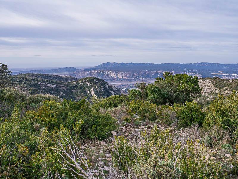 Sur le plateau du Crane de Colombier, la vallée de la Durance sous les Alpilles au delà de la Combe de Vidauque (Petit Luberon, les Taillades, Vaucluse – 19/03/13)