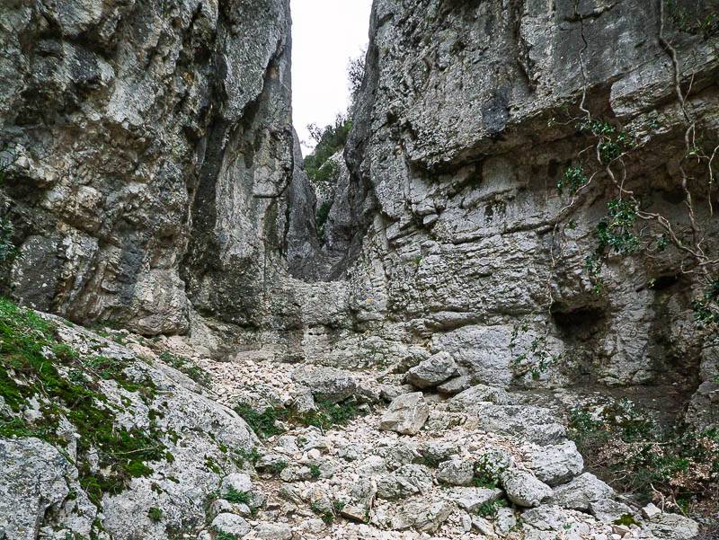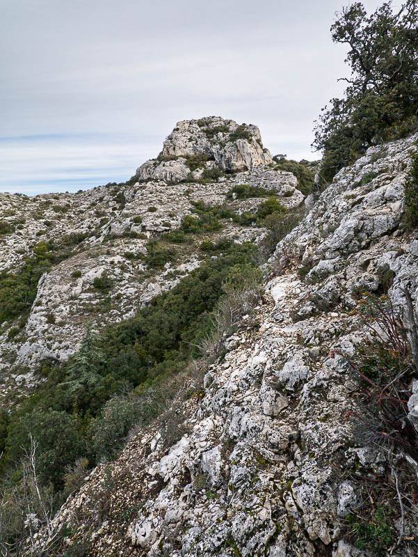 Passage escarpé à la sortie de la Gorge de Badarel, dominé par le Sommet du Castelas (Petit Luberon, les Taillades, Vaucluse – 19/03/13)