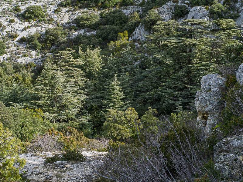 Un beau bouquet de cèdres en bas du Vallon de la Brayette (Petit Luberon, Robion, Vaucluse – 19/03/13)