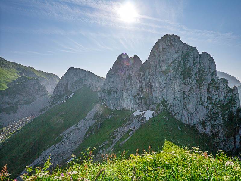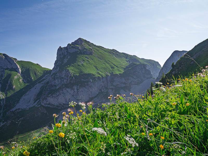 La variété et la richesse de la flore qui égaie la montagne de couleurs vives est impressionnante. L’observer occupe l’esprit dans la longueur de certaines portions du début de la randonnée. Après le Chalet Vert, en montant prendre la crête, les fleurs des premiers Lis martagon de la saison finissent d’éclore et débouchant au soleil, c’est la blancheur pure des Lis de Saint-Bruno qui prend le regard. Le vaste paysage passe au second plan…